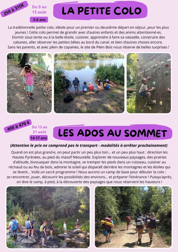 Petites nouveautés cette année : on prévoit un départ à la montagne pour les jeunes de 14 à 17 ans, ainsi que le retour de la fameuse colo du printemps…